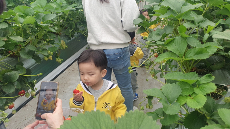 샘이나, 해피키즈, 킨더하바어린이집의 딸기따기