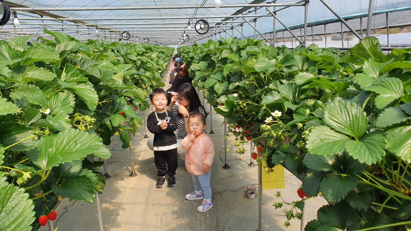 반석동 아람어린이들이 딸기 따러왔대요