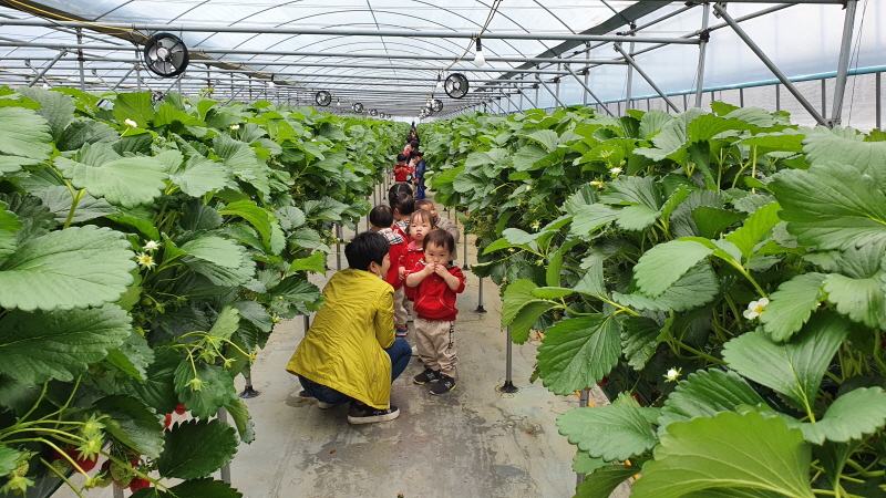 꿈사랑어린이집의 딸기따기체험