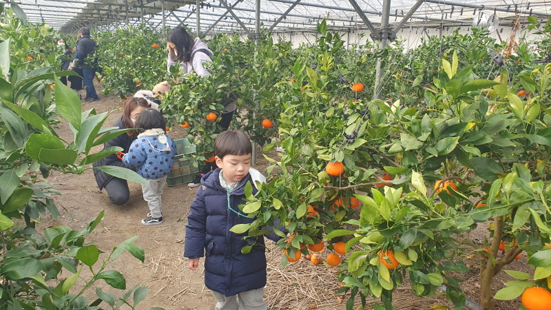 하늘꿈어린이집에서 레드향따러 마을로 왔대요