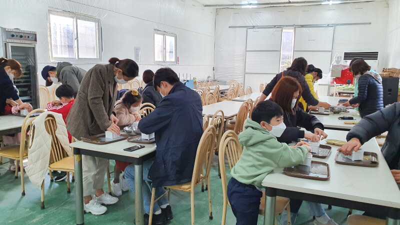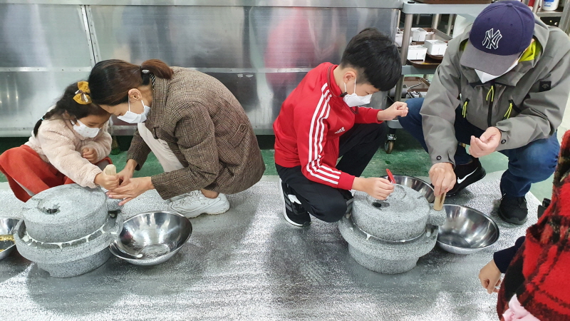 코로나로 지친 전국에서 오신 가족분들을 모시고 마을에서 생산된 콩으로 두부를 만들어 보았답니다