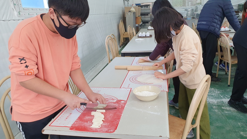 우리마을에서 생산된 밀로 직접 칼국수만들어 점심도 먹고~ 멧돌을 갈아서 두부도 만들어 보고~~