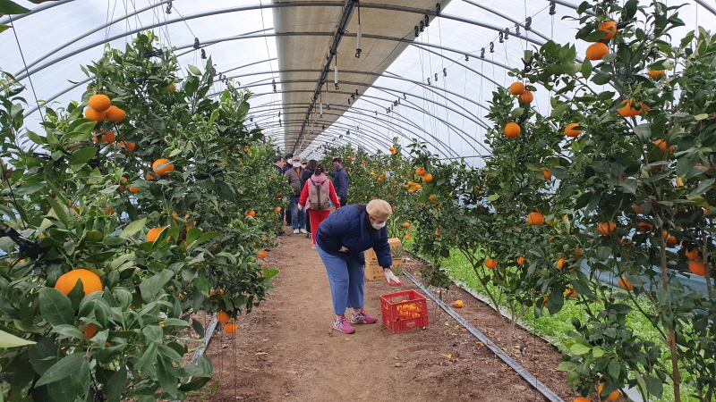 하우스에서 자라는 레드향을 신기한듯 따보고 맛보고~~