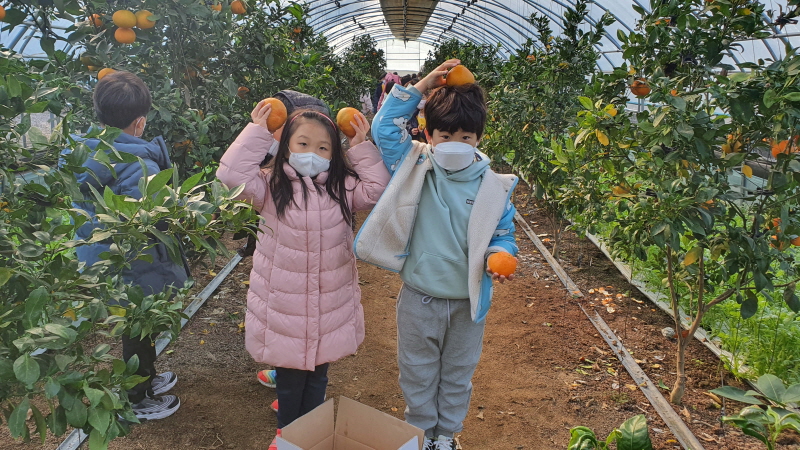 슈필렌유치원의 레드향따기 체험기 > 체험후기