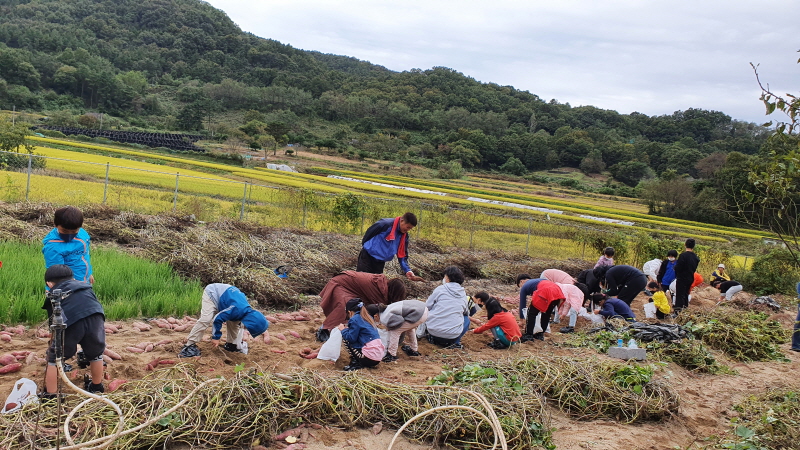 도마동 지역아동센터에서 우리밀칼국수만들어 점심먹고 신나게 마을탐방하고 고구마를 캐고 갔답니다