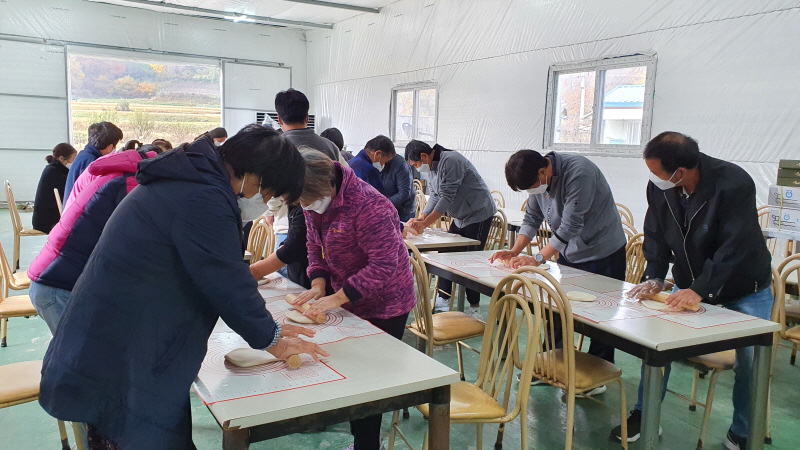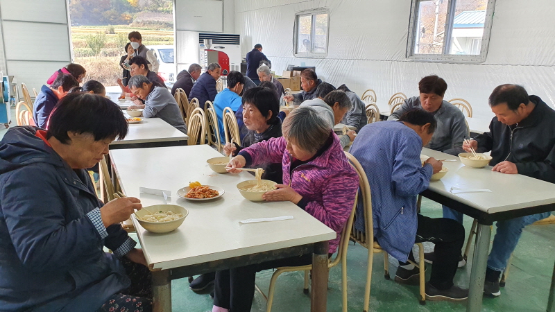 회원들의 정성어린 손맛으로 칼국수랑 김치 겉절이~~ 정말 맛있었대요