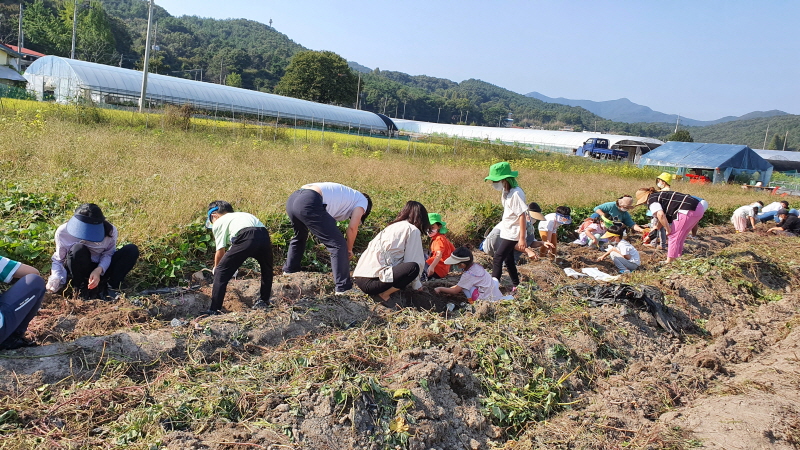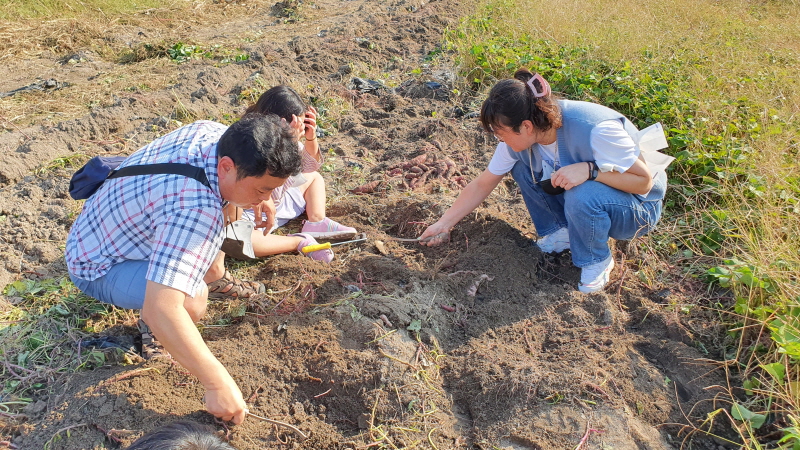감자와 달리 땅속 깊이 박혀 있는 고구마를 땀을 뻘뻘흘리며 캐는 체험을 하였답니다