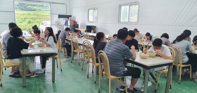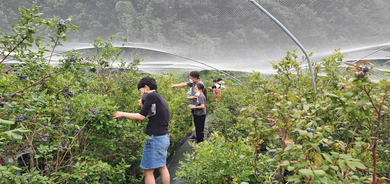 교보교육재단에서 가족단위로 숲체원에서 하루를 보내다가 마을로 블루베리따기랑 우리밀 칼국수를 만들어 점심을 먹었답니다