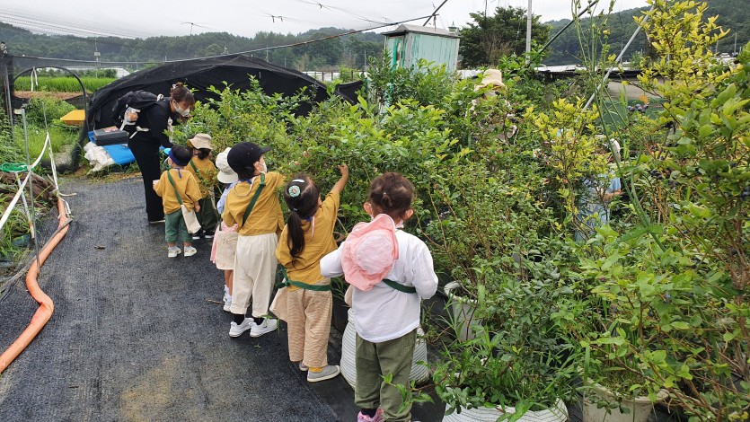 세종시 반곡동 수루베숲어린이집에서 블루베리따기 체험을 하고 갔답니다~~