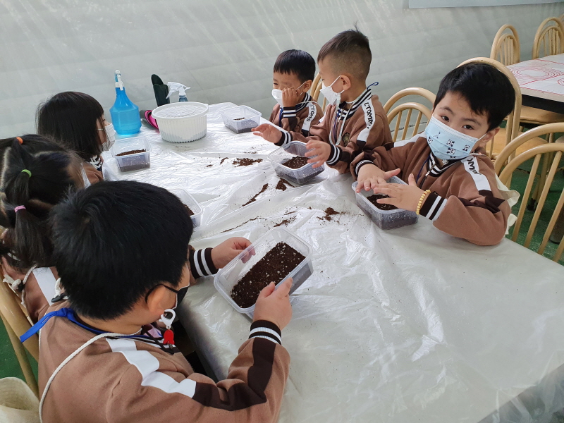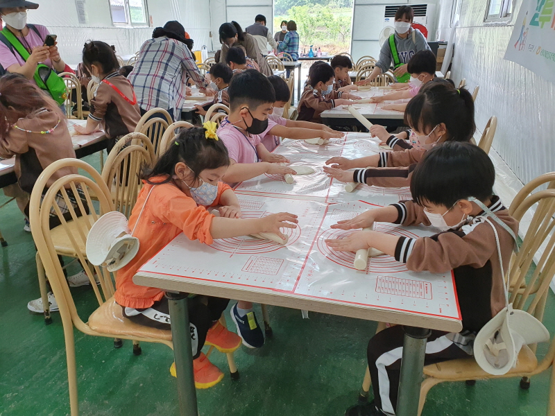 서현어린이집에서 우리밀칼국수만들기와 밀싹키우기 체험을 하고 갔답니다