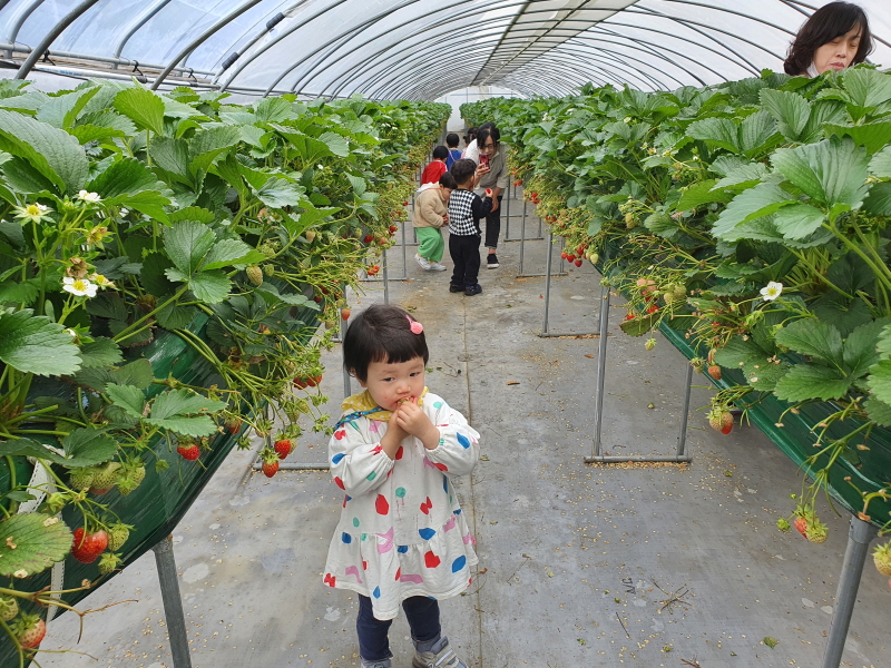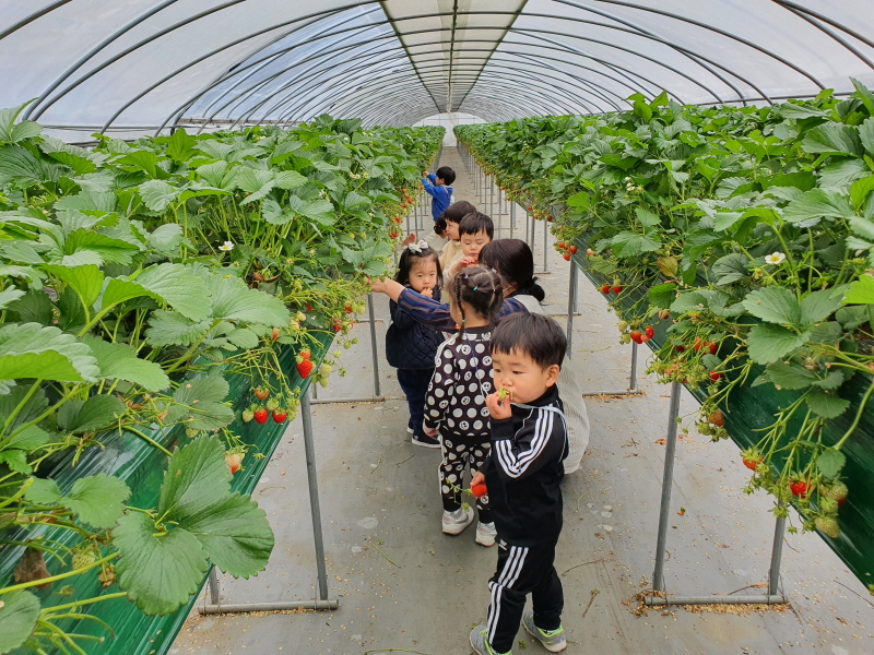 계룡시 늘사랑어린이집의 딸기따기 체험